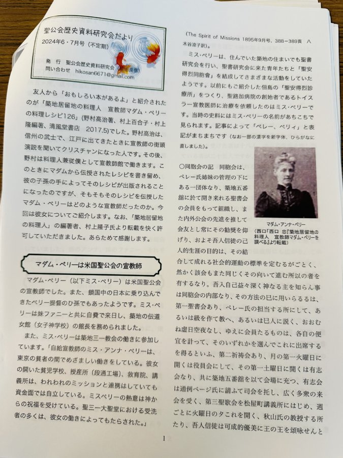 ・テーマ: 「築地聖三一教会を中心にした聖公会の伝道と教育」