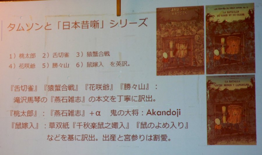 草双紙でお馴染みの昔話を英仏独語などに翻訳し、美しい挿絵を添えて出版するという斬新な企画を思い立ち、実行に移した。まず、タムソンが6つの昔話を平易な英語に訳出、フランス語とドイツ語にも重訳され、小林永濯という優れた絵師による精緻で魅力的な挿絵を添えた欧文昔噺絵本は注目を集めた。