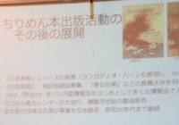 今回、尾崎るみ氏にご講演いただいた「ちりめん本」は1800年代に世界に向けて出版されたものであり、それぞれの題材は「日本の昔話」である。