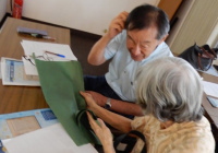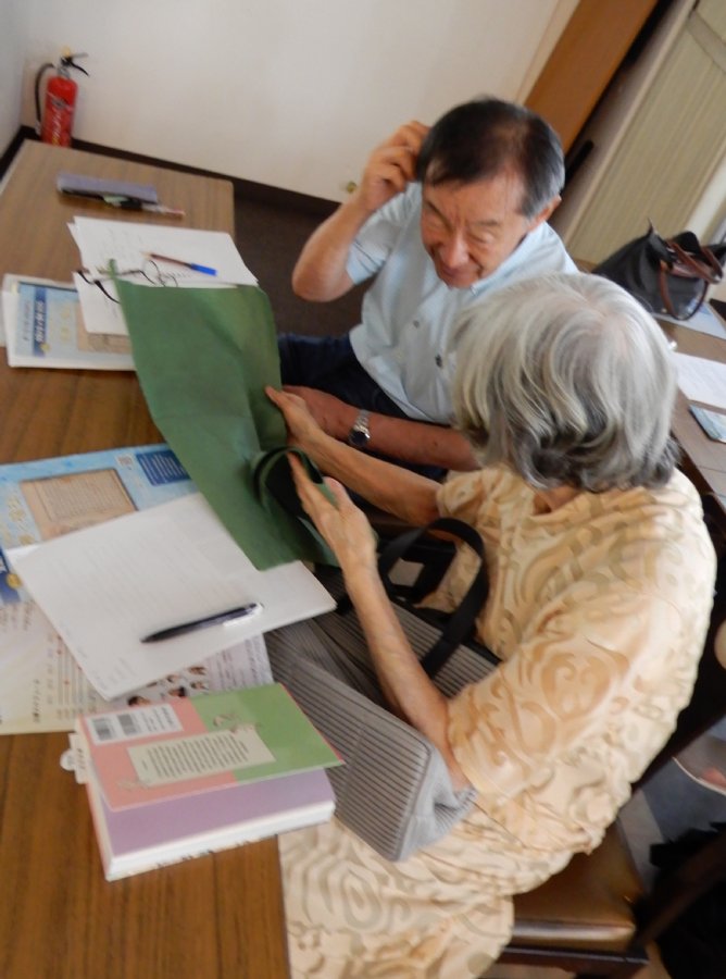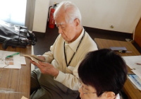 回覧されたちりめん本を見る参加者 |