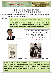 演題の「誤った理解を正してわかる・・・」とある意味が最初は理解できなかったが、金坂氏の講演をお聞きし、それは地理学者である金坂氏でなければ判断できない部分の誤訳が過去の翻訳者の記載に有り、それを細かく分析・訂正されたものが金坂氏の研究成果であることが判った。